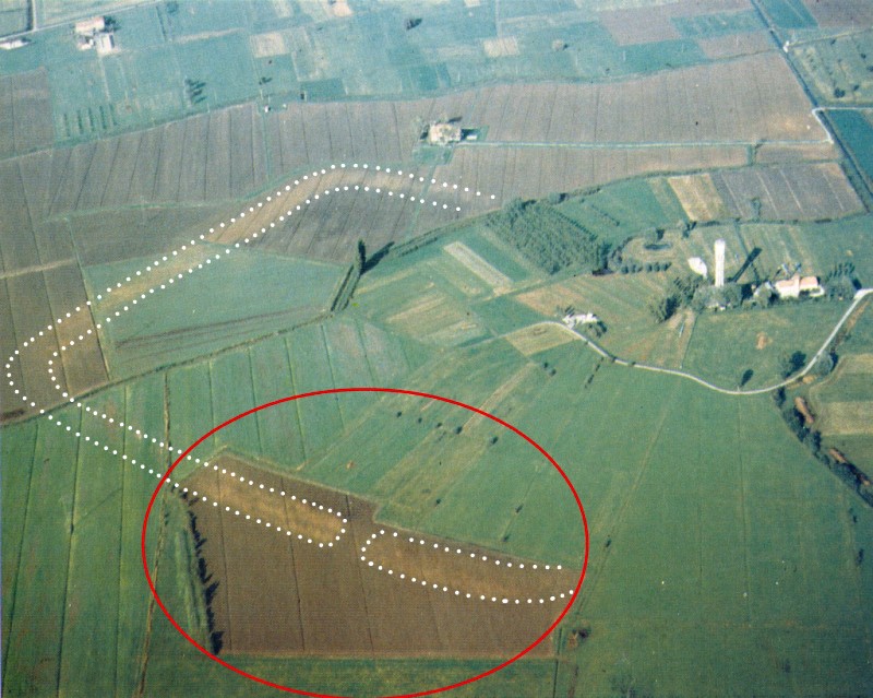 Foto aerea della Terramara di La Braglia (RE). L’interruzione del terrapieno corrisponde all’ingresso del villaggio.